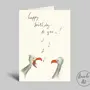 Lustige Geburtstagskarte mit einer singenden Schreimöwe. Die Geburtstagsmöwe guckt ein wenig verdutzt, ob des Ständchens.