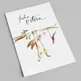 Die Karte ist, wie alle Postkartendrucke bei Annelis Art, mit Pigmentlinern gezeichnet und mit Aquarellfarben coloriert worden. Die Schriftzüge sind händisch mit unterschiedlich dicken Pigmentlinern gelettert worden (Handlettering), dann digitalisiert und vor dem Druck bearbeit worden.